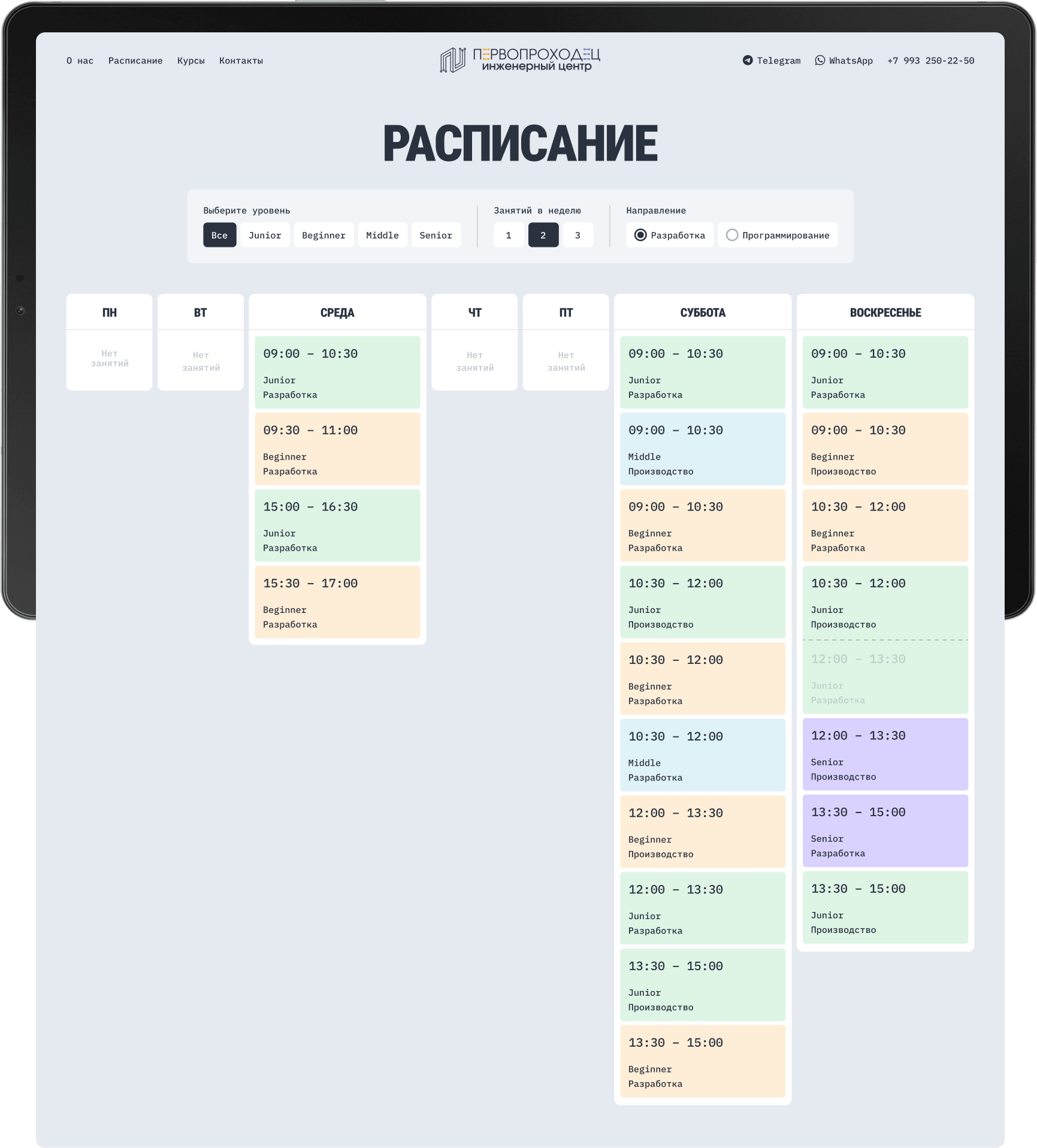 Касаемо администрирования: заказчик просил объяснить, как управлять днями недели в расписании, как увеличивать, уменьшать, адаптировать под мобайл, тк они сами немного умеют программировать и должны разобраться.